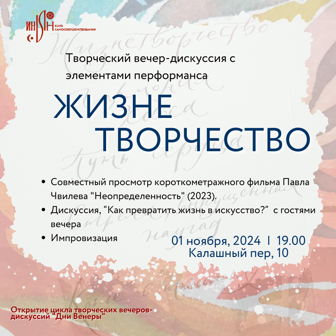 01 ноября 2024 состоится первая творческая встреча-дискуссия цикла "Дни Венеры" Клуба самосовершенствования "Инь Ян"